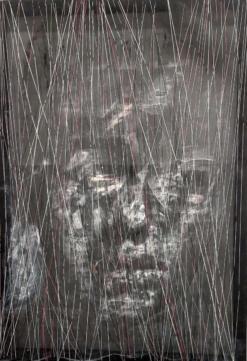 Olio e ricamo su chiffon, chiffon, 2023